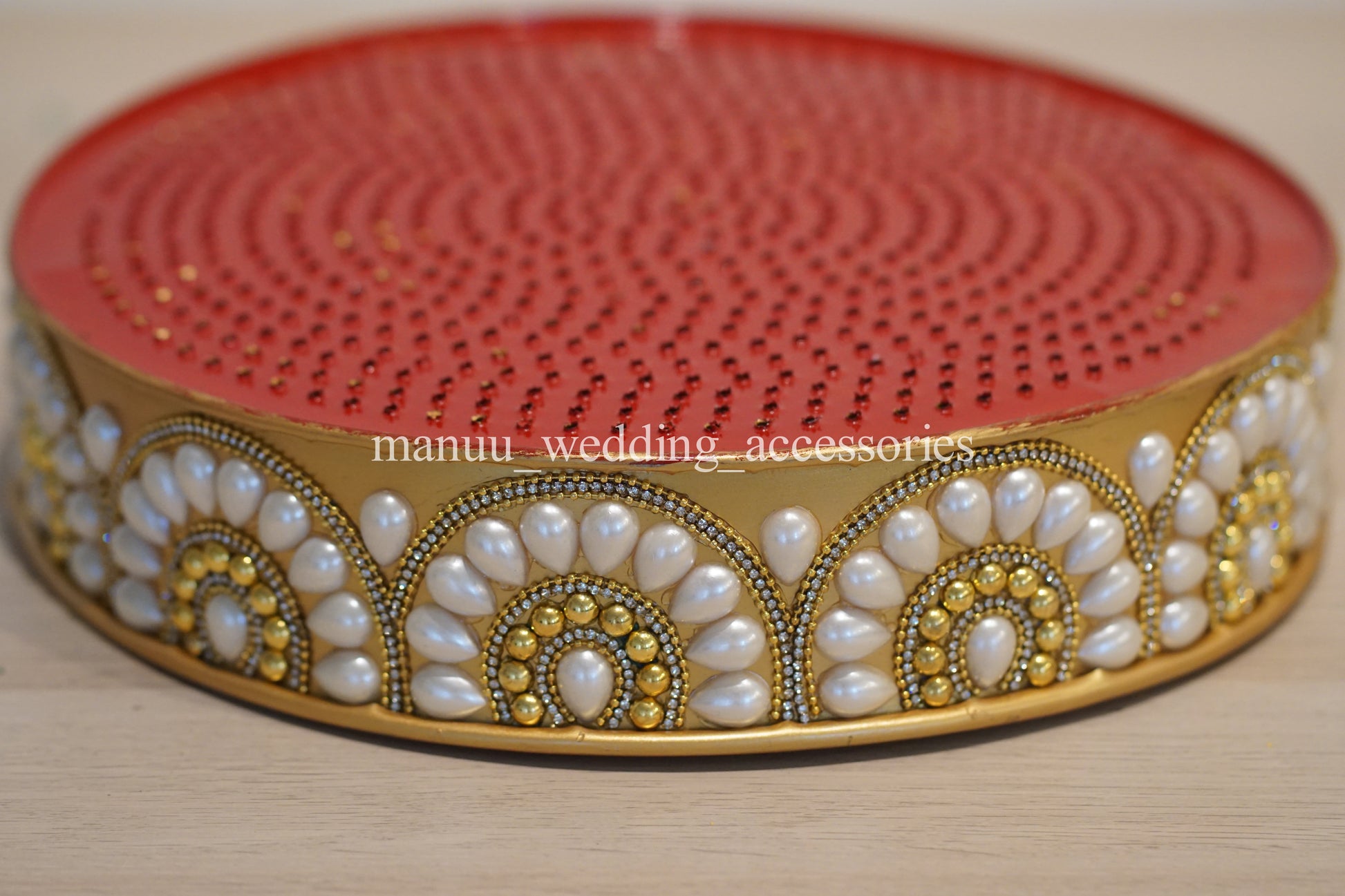 Beautifully decorated white and gold complete wedding set available. These accessories painted with vibrant colors and elegantly designed.